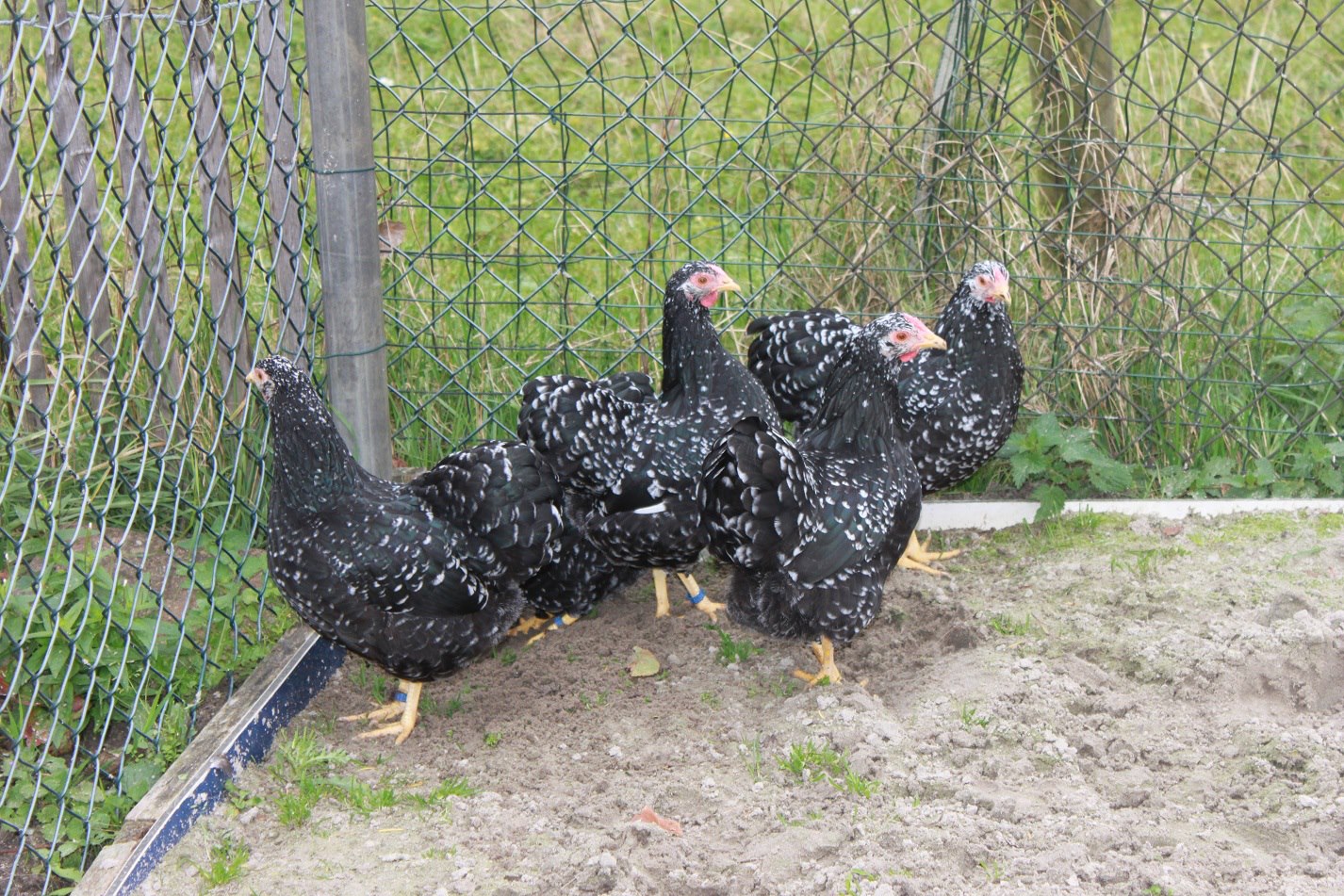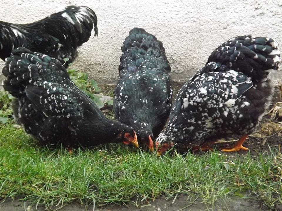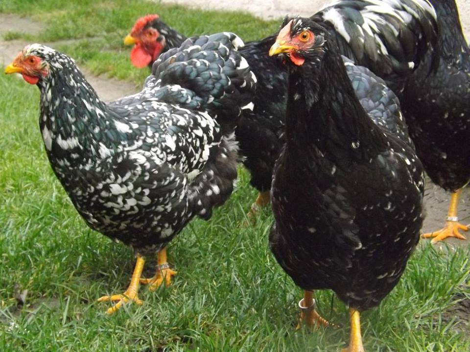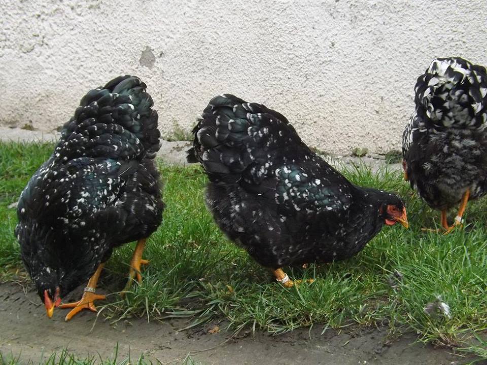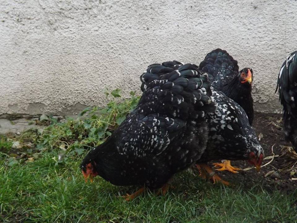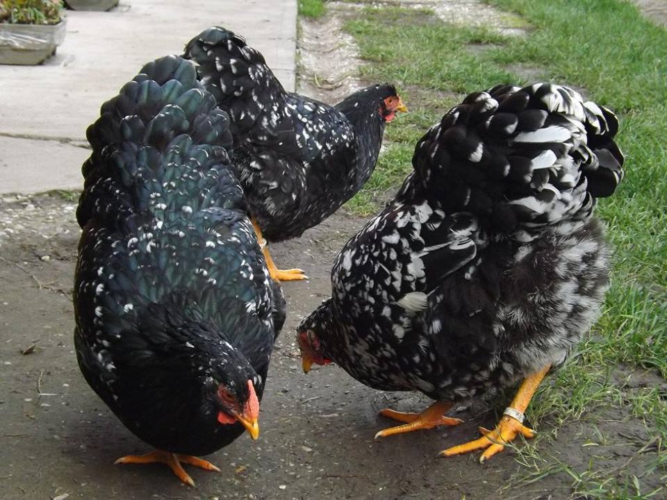 Het gehele gevederte zo gelijkmatig mogelijk zwart met een witte scherp begrensde tekening. Het tekeningbeeld moet zo regelmatig mogelijk zijn. De slagpennen en staartstuurveren, en bij de haan ook de sikkels, worden met een kleine witte eindvlek verlangd. Deze witte tekening ligt op het einde van de veer symmetrisch ten opzichte van de veernerf. De witte veereinden variëren van enigszins getoepte tot ruitvormige eindtippen. Het zwart dient te overheersen. Het zwarte veergedeelte
