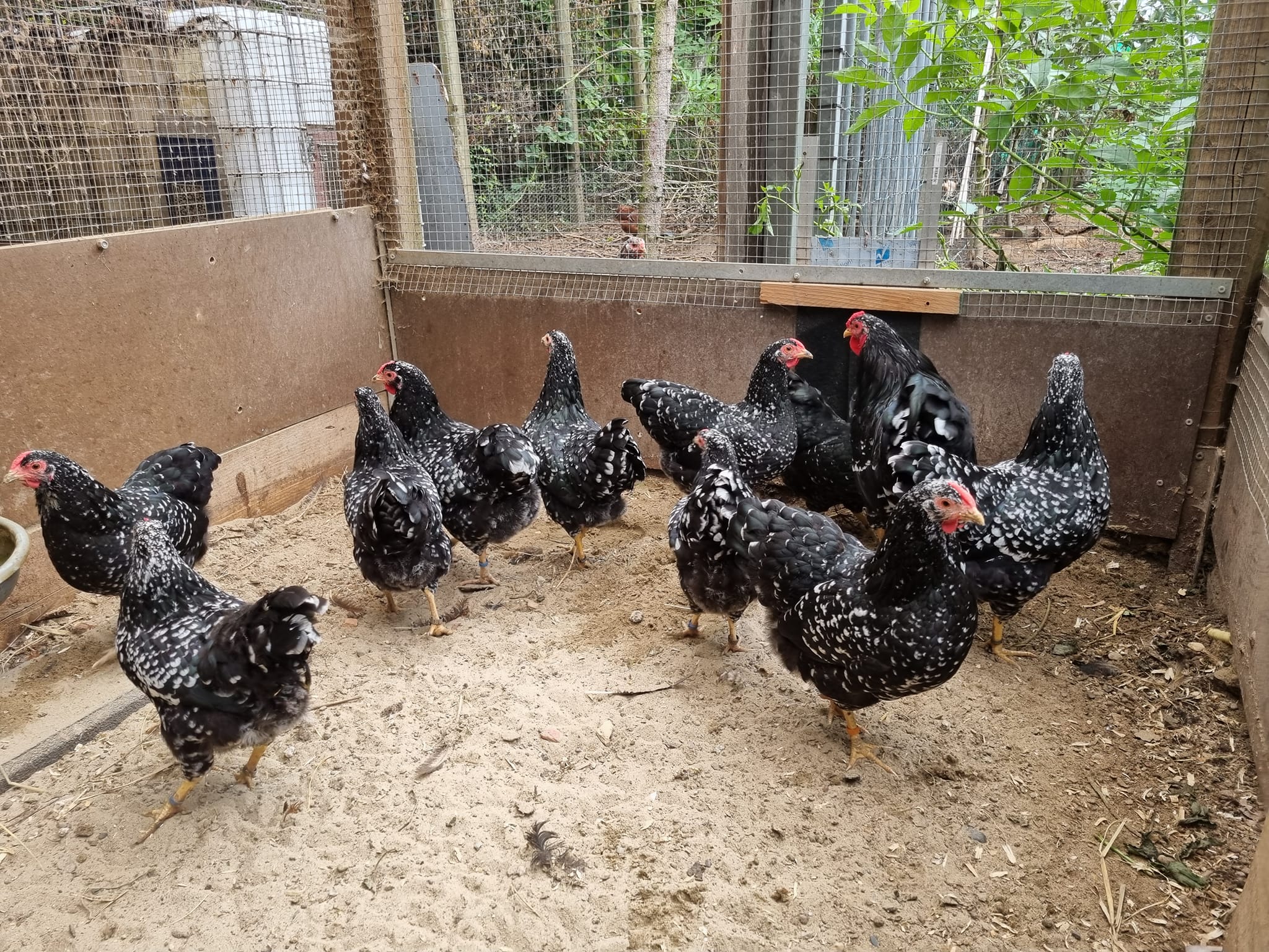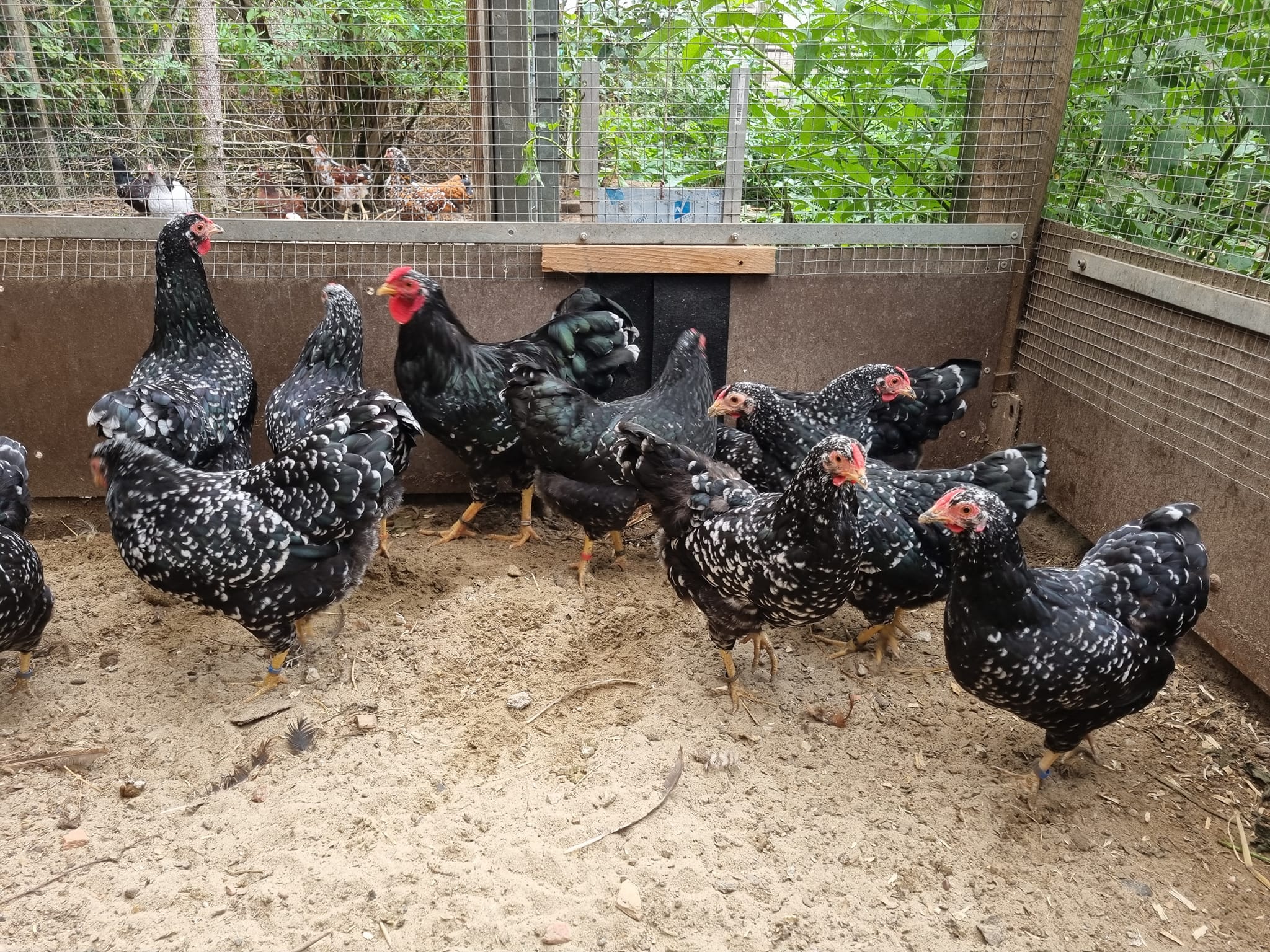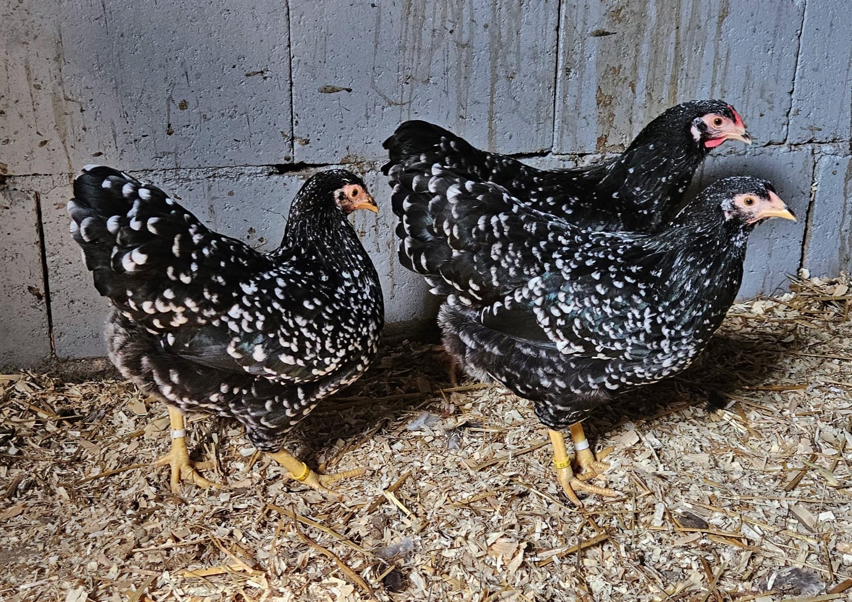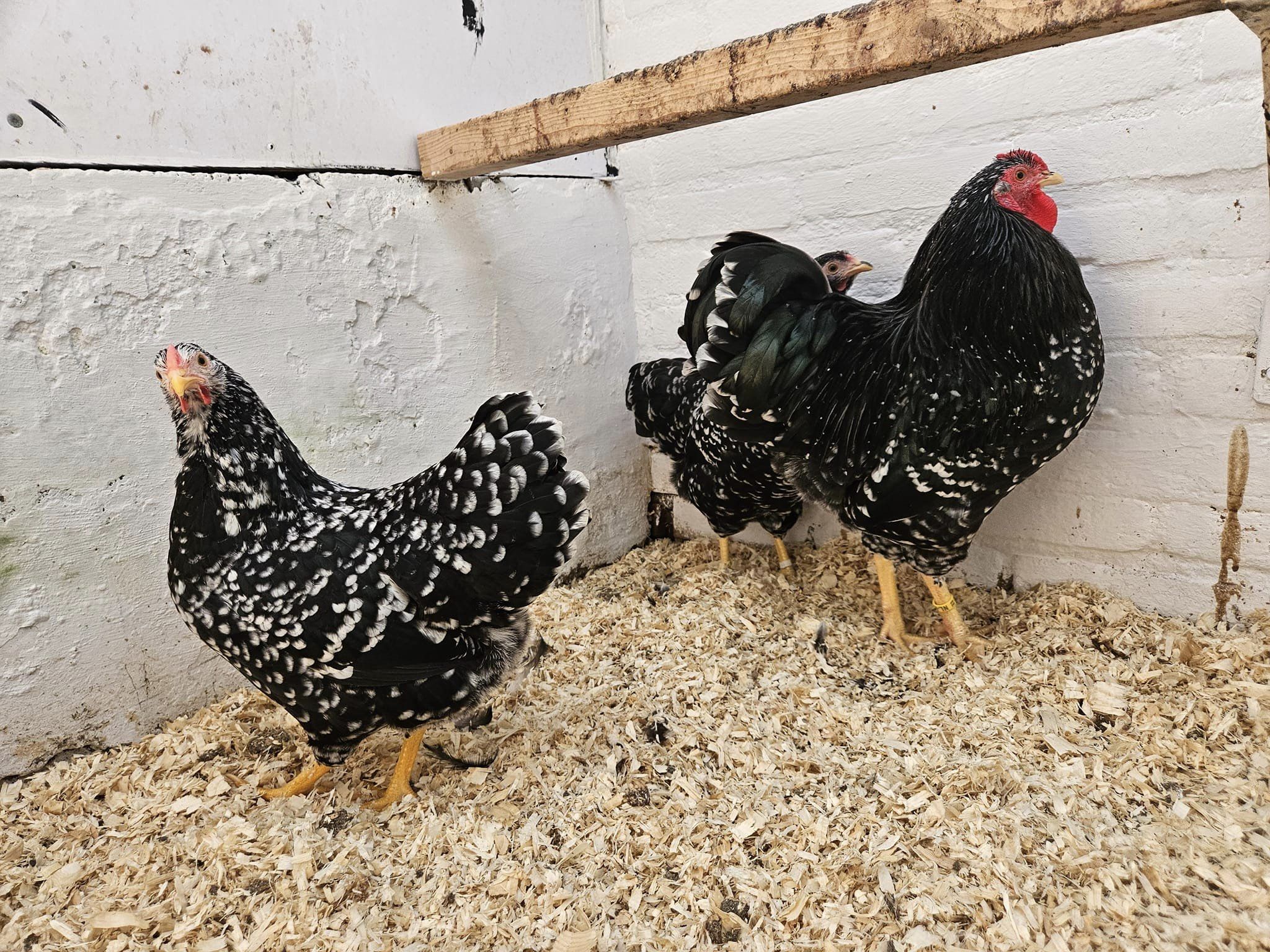 Het gehele gevederte zo gelijkmatig mogelijk zwart met een witte scherp begrensde tekening. Het tekeningbeeld moet zo regelmatig mogelijk zijn. De slagpennen en staartstuurveren, en bij de haan ook de sikkels, worden met een kleine witte eindvlek verlangd. Deze witte tekening ligt op het einde van de veer symmetrisch ten opzichte van de veernerf. De witte veereinden variëren van enigszins getoepte tot ruitvormige eindtippen. Het zwart dient te overheersen. Het zwarte veergedeelte