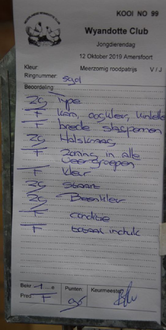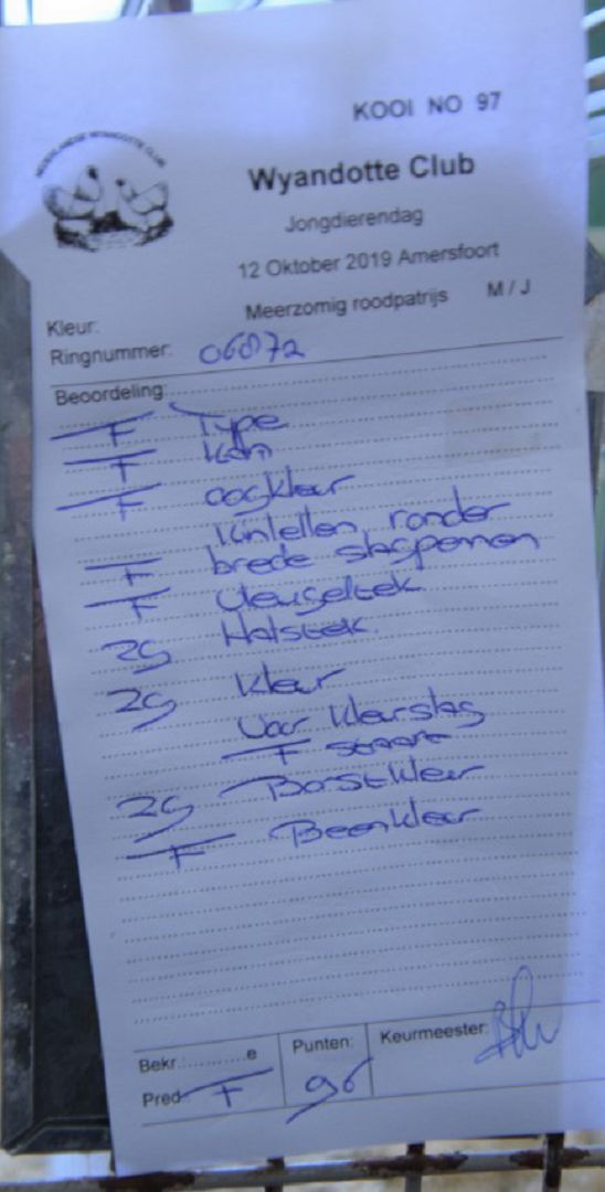 Getekend no 20 Meerzomig zilverpatrijs 1e F 96 V/J J A Vermeer Sliedrecht