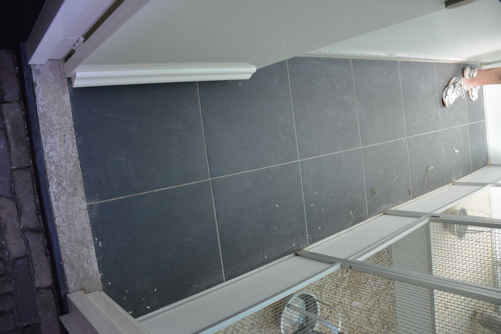 Om 16:00 uur zijn we weer terug in Driehuis bij Michel Sneekes. Hij was in 2006 begonnen met de witte Wyandotte krielen. In dat jaar woonde hij nog in Santpoort en onder de duiven (!) werden er zes eieren uitgebroed. Nu gebruikt hij zijn eigen broedmachine en had na twee rondes ongeveer 40 kuikens. Naast de kleur wit lopen er nog een paar meerzomig patrijs Wyandotte krielen omdat hij de kleur erg mooi vindt en wit zwartcolumbia. In de tuin staat een groot hok met overdekte ren waarin zijn oude dieren lopen. In een deel van de garage is een afdeling met tentoonstellingskooien voor de jonge hanen en een paar oude. Hier worden in het voorjaar de koppels gehuisvest: 14 hennen, elk afzonderlijk, en een paar hanen, die steeds rouleren zó dat er steeds sprake is van één hen met één haan. Ook in de tuin vinden we nog een hok met drie afdelingen voor de jonge hennen, die om de beurt worden losgelaten op het gazon. We bewonderen het prachtig gebouwde met luxe tegelvloer.