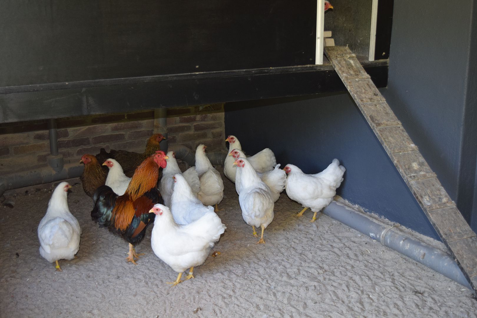 Zoals altijd komen er meerdere onderwerpen tijdens de koffie ter sprake. Ook bij Wim zitten er roofvogels. Wanneer de discussie gaat over eierpikken dan zijn de meesten het er over eens dat het opzetten van kippenbrillen hiertegen helpt. Het doorgroeien van de sporen bij (oude) hanen wordt meestal verholpen door het afdraaien met een (combinatie)tang; dat kan een beetje bloed opleveren, maar dat is al snel gestelpt. Het alternatief is natuurlijk afknippen, natuurlijk niet strak langs de poot, maar ruim een centimeter laten staan waar het “leven” in zit.