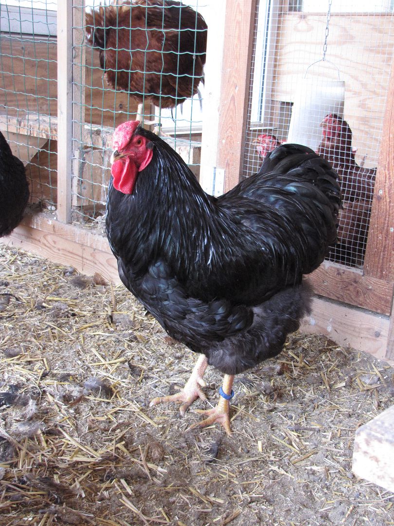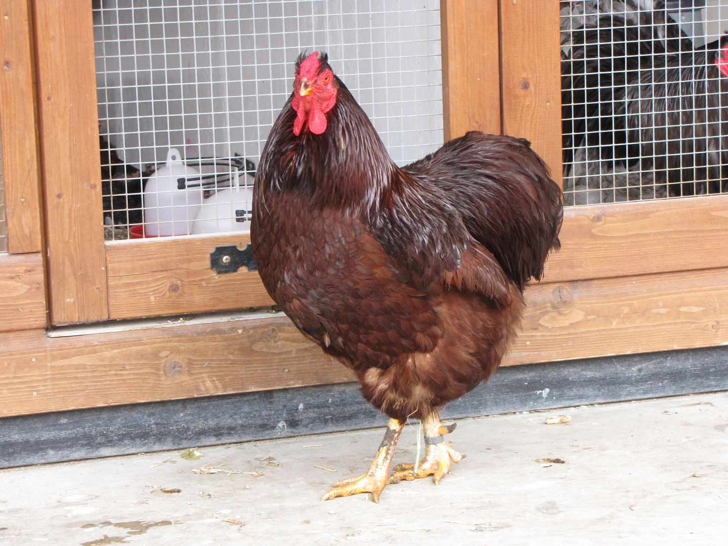 Leen heeft een rode haan uit Tsjechië met helaas (niet toegestaan) grijs in het onderdons. De rode hen heeft hier geen last van. Bij de nakomelingen zien we zowel met als zonder grijs. Hij heeft dit jaar 5 jonge rode, 2 blauwe en 3 vuilwitte Wyandottes.