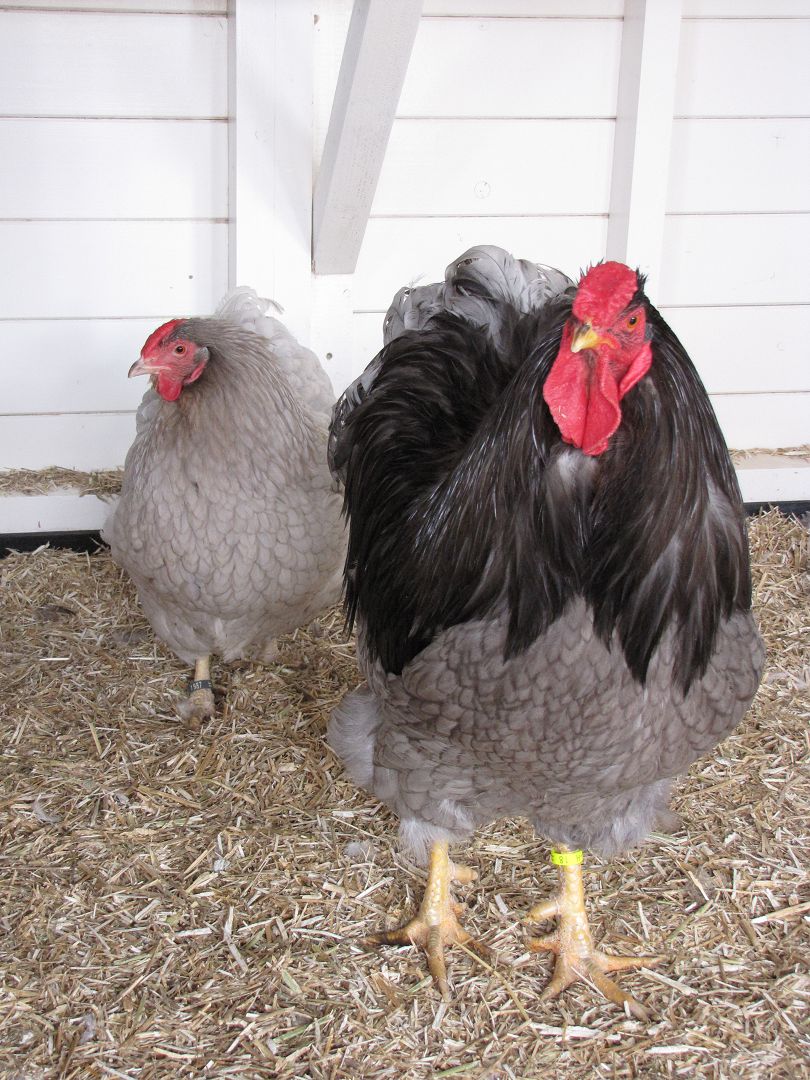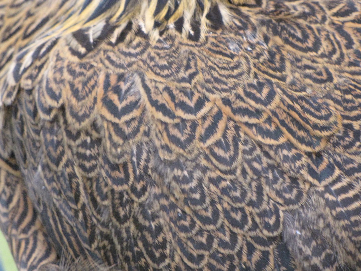 We zien een tweetal blauwe fokhanen en spreken onze voorkeur uit, daarnaast een prachtige collectie jonge dieren waarbij vooral de goud blauwgezoomde opvallen.