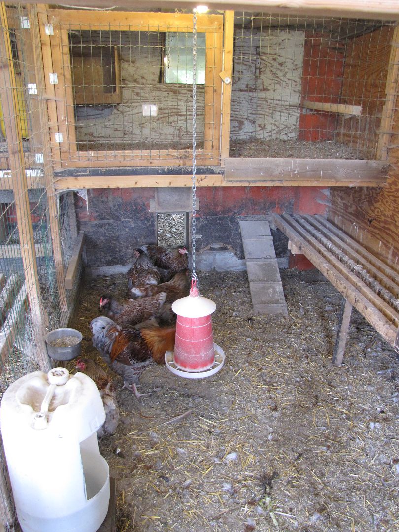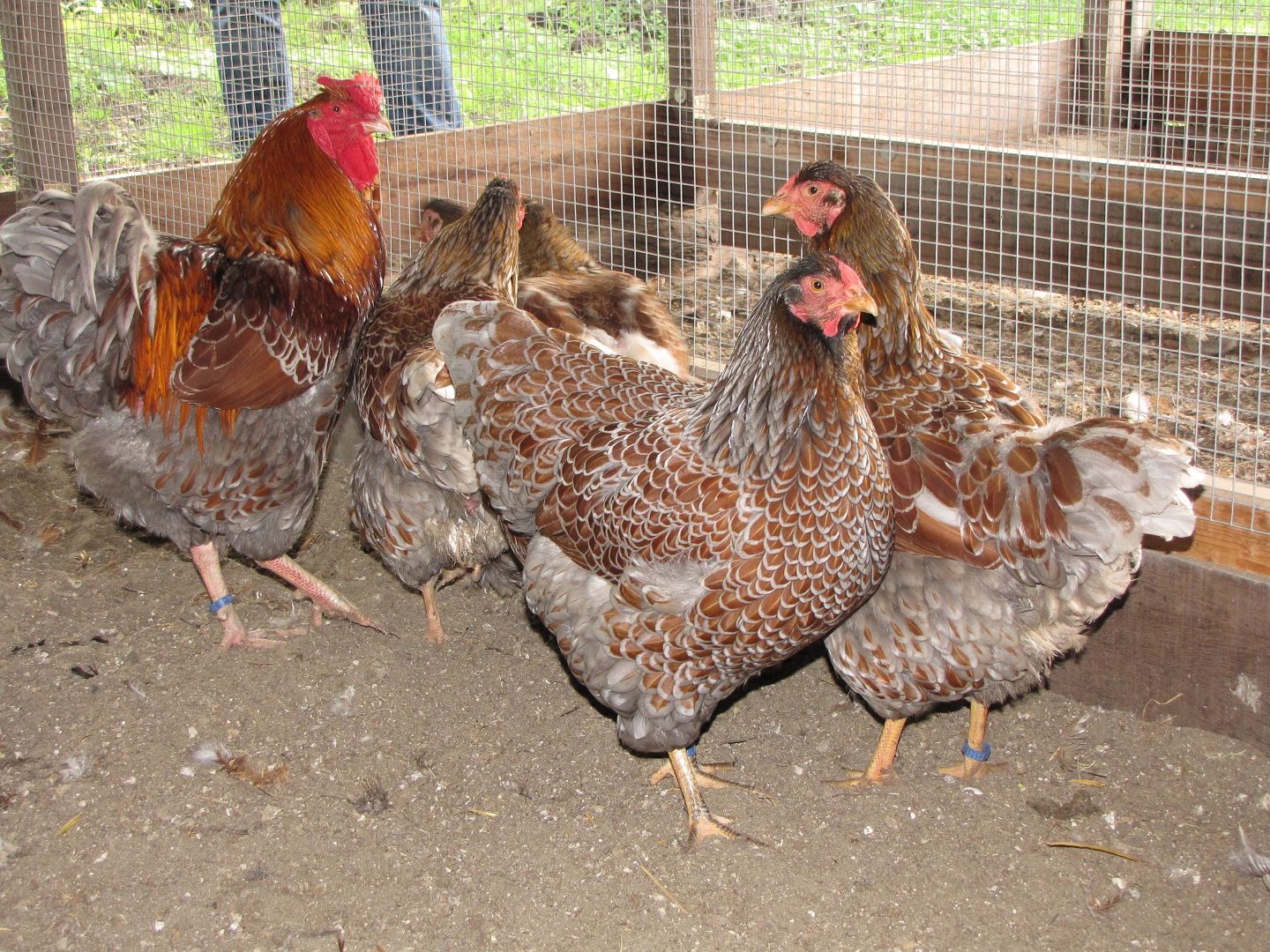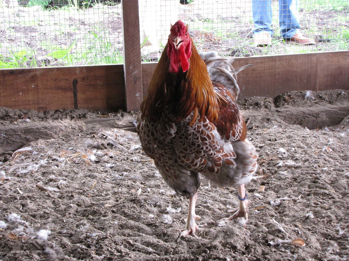 Even na 12.00 uur rijden we naar de kinderboerderij waar we Leen Ouwendijk ontmoeten die daar werkt en een deel van zijn Wyandottes heeft lopen; grote in zowel rood als blauw. Het terrein beslaat 1 ha. en Leen moet oppassen voor de vossen. Hij had dit jaar last van het slechte voorjaar, een slechte bevruchting. Er staat op het terrein een grote broedmachine en er lopen vooral Nederlandse rassen (o.a. kippen, konijnen, geiten). Tip: hang een bis wilgentakken in het hok tegen verenpikken; ook stukken tempex in het hok helpt goed.